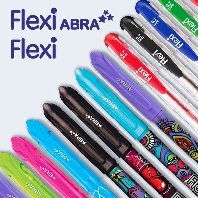 Flexi Abra skupia modele długopisów ścieralnych skrojonych według najnowszych trendów wzorniczych. Te długopisy są ekonomiczne i niezawodne, wyposażone w specjalną gumkę, która w sposób termiczny, poprzez pocieranie powoduje znikanie tuszu. Artykuły Flexi Abra są unikatowe, funkcjonalne i awangardowe. To długopisy, których nie chowa się w szufladzie.